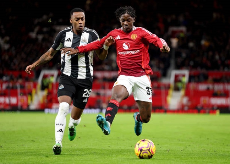 Dù được chơi trên sân nhà nhưng Man United không thể làm chủ thế trận ngay sau tiếng còi khai cuộc. Newcastle nhanh chóng chiếm lĩnh thế trận và tạo ra những cơ hội nguy hiểm. Phút thứ 4, một đường chuyền bóng tinh tế của Lewis Hall đã tạo cơ hội cho Alexander Isak bật cao đánh đầu cận thành, mở tỷ số cho Newcastle.