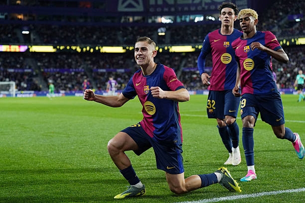 Femin Lopez ăn mừng bàn thắng ấn định chiến thắng 2-1 cho Barcelona trước Valladolid. Ảnh: fcbarcelona.com