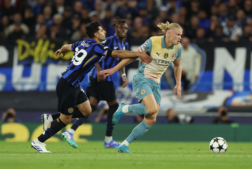 Haaland “tịt ngòi” trong trận Man City hòa Inter 0-0. Ảnh: Reuters