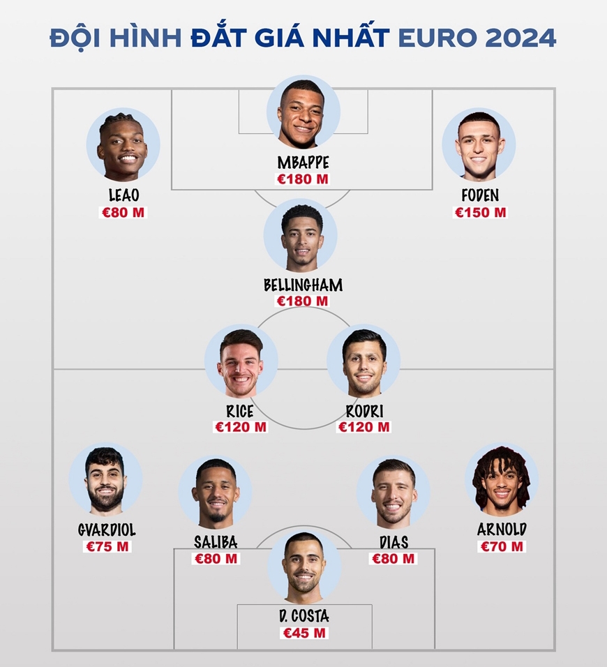 Đội hình đắt giá nhất Euro 2024. Ảnh: TPO