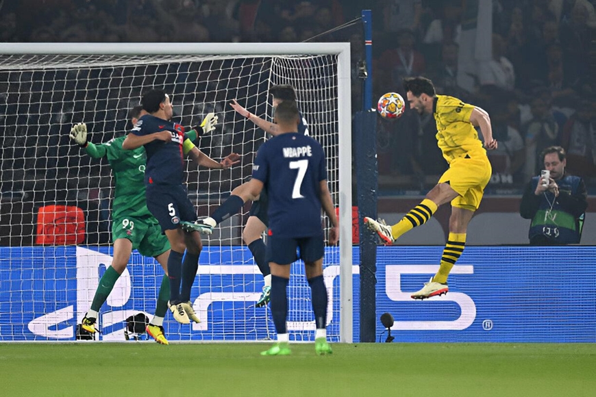 Tin thể thao hôm nay, Mats Hummels ghi bàn thắng duy nhất giúp Dortmund đánh bại PSG. Ảnh: Getty