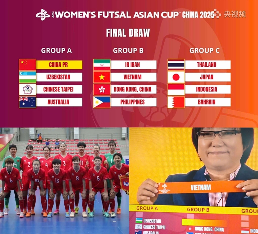 Kết quả bốc thăm đưa tuyển futsal nữ Việt Nam vào bảng B cùng với Iran, Hong Kong (Trung Quốc) và Philippines, tại vòng chung kết Giải futsal nữ châu Á 2025.