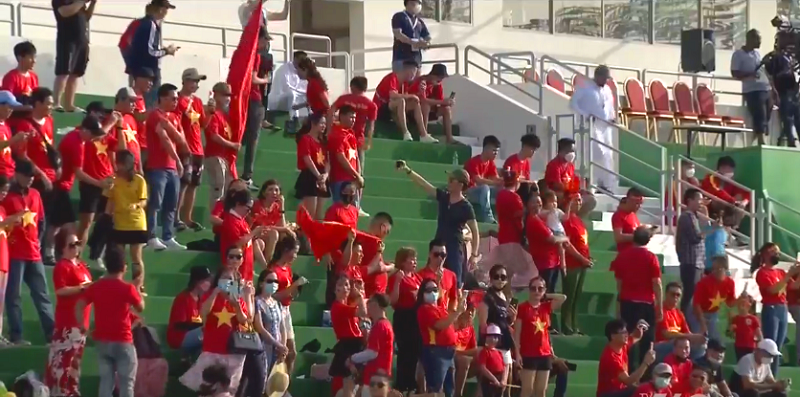 Đông đảo người hâm mộ Việt Nam tới cổ vũ cho U23 Việt Nam. Ảnh chụp màn hình.