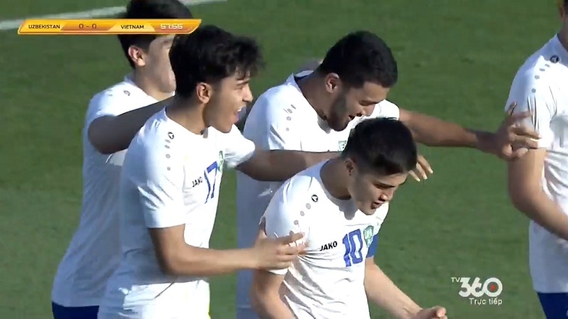 Diễn biến trận đấu đã chứng minh, đội tuyển U23 Uzbekistan kiểm soát bóng tốt hơn và tạo ra nhiều cơ hội nguy hiểm hơn đội tuyển U23 Việt Nam. Nỗ lực của U23 Uzbekistan được đền đáp ở phút 57 bằng bàn thắng mở tỷ số của Jasurbek. Từ cự ly đá phạt với khoảng cách 25m, cầu thủ Jasurbek sút vòng qua hàng rào, đưa bóng hướng đến góc cao đội tuyển U23 Việt Nam. Dù thủ môn Văn Chuẩn bay người hết cỡ nhưng không thể chạm vào bóng.