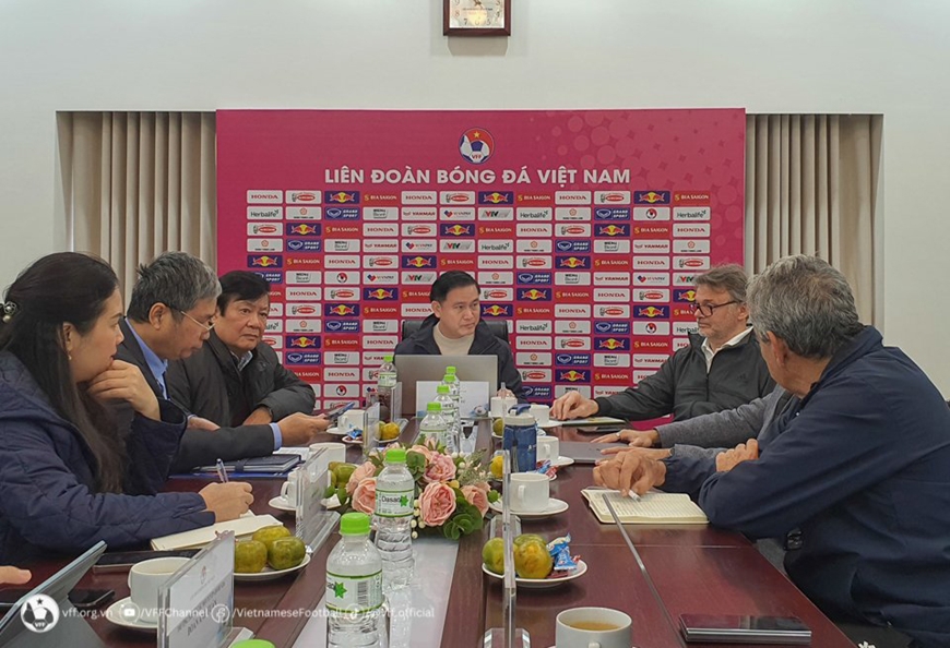 Phó chủ tịch VFF Trần Anh Tú làm việc với HLV Troussier về đội tuyển Việt Nam. Ảnh: VFF
