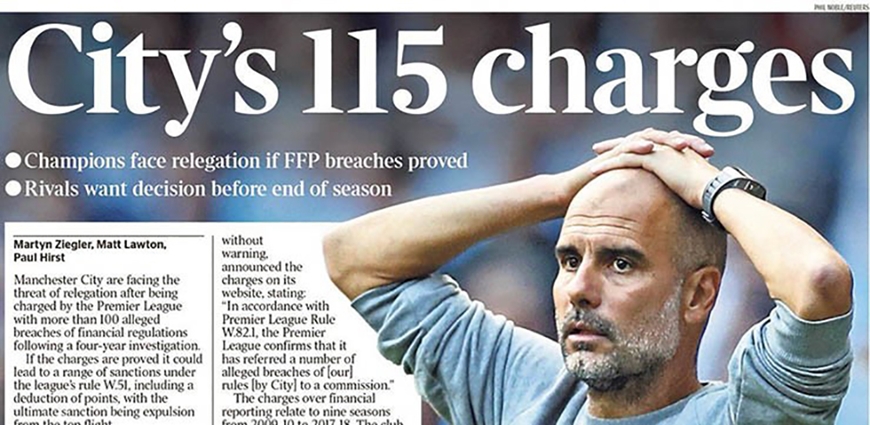 Manchester City bị cáo buộc vào tháng 2-2023 vì vi phạm các quy tắc tài chính của giải đấu, sau cuộc điều tra kéo dài 4 năm về các hành vi vi phạm bị cáo buộc từ năm 2009 đến 2018.
