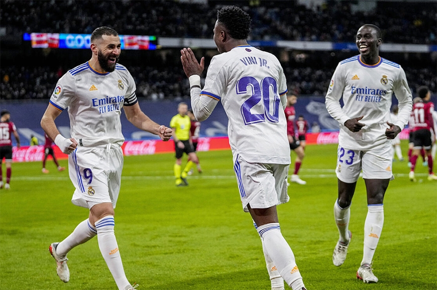 Benzema và Vinicius Jr đều lập cú đúp mang về chiến thắng cho Real Madrid. Ảnh: Marca.