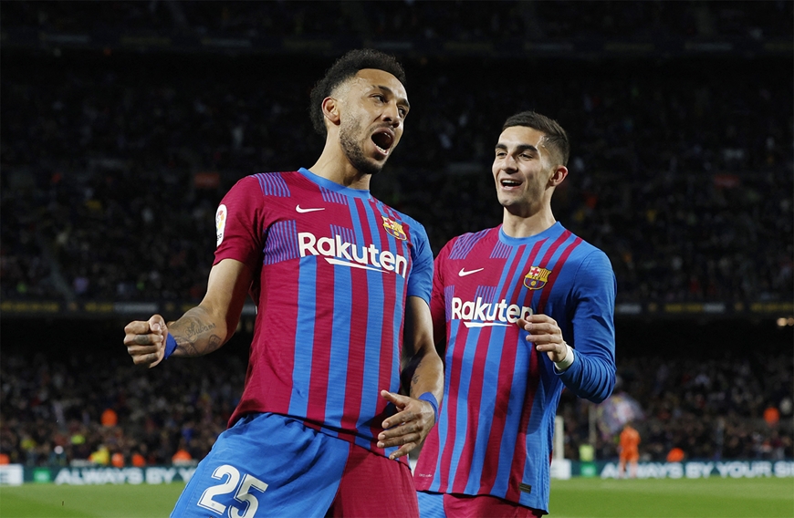 Quyết tâm chiến thắng của thầy trò HLV Xavi được thể hiện bằng lối chơi tấn công tổng lực trước đối phương. Phút 37, tân binh Aubameyang ngả người đá bồi sau tình huống đánh đầu dội xà ngang của Pique để mở tỷ số trận đấu. Đây là pha lập công thứ 4 của tiền đạo người Gabon trong 3 trận gần nhất đá cho Barca.