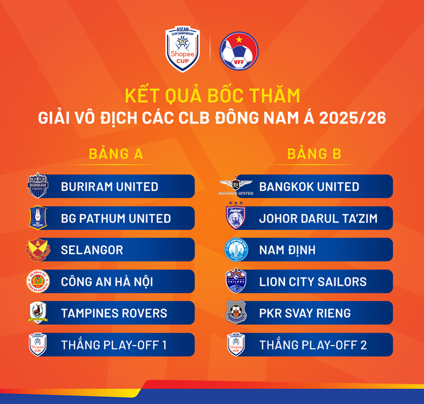 Chiều 4-7, tại Bangkok (Thái Lan), Liên đoàn Bóng đá Đông Nam Á (AFF) tiến hành bốc thăm chia bảng Giải vô địch bóng đá các câu lạc bộ Đông Nam Á 2025-2026.