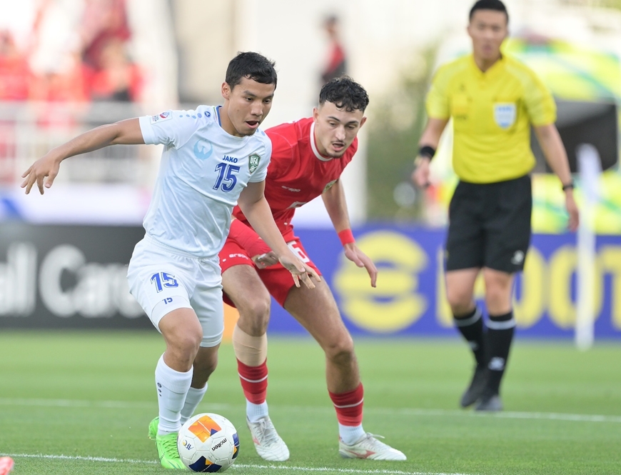 Cầu thủ U23 Uzbekistan (áo trắng) hơn hẳn về kỹ thuật cá nhân. Ảnh: AFC