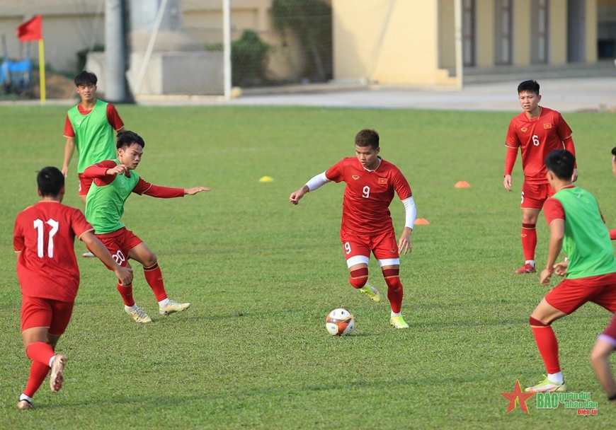 Buổi tập của U22 Việt Nam trước trận gặp U22 Malaysia. Ảnh: VIỆT AN