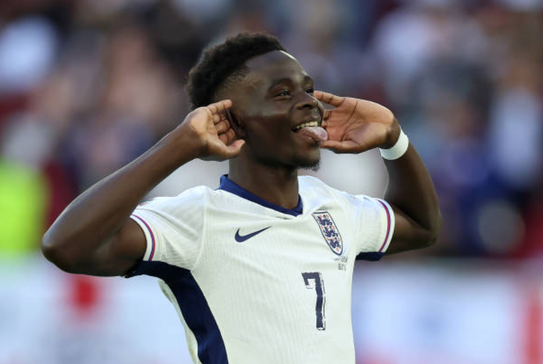 Saka được bầu chọn là Cầu thủ xuất sắc nhất trận khi Tam sư loại Thụy Sĩ ở tứ kết EURO 2024.Cầu thủ chạy cánh của Arsenal gỡ hòa sau khi Breel Embolo đưa Thụy Sĩ dẫn trước trong hiệp 2. Cầu thủ 22 tuổi này cũng thực hiện thành công loạt sút luân lưu khi Jordan Pickford cản phá được nỗ lực của Manuel Akanji.Saka ăn mừng pha phạt đền thành công.