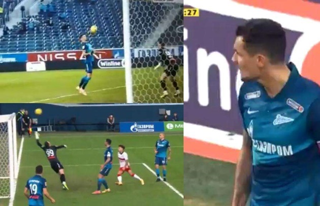 Không gặp áp lực nào đáng kể, đội trưởng Zenit quyết định dùng ngực đỡ bóng về cho thủ môn Andrey Lunev ôm gọn. Không may trái bóng lại nảy cao hơn dự kiến, vòng qua đầu Lunev bay thẳng vào lưới trong nỗ lực bay người vô vọng của thủ thành đội chủ nhà.