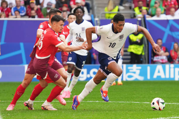 Là ngôi sao hàng đầu trên hàng công tuyển Anh, không có gì khó hiểu khi Jude Bellingham nhận được sự quan tâm đặc biệt của các cầu thủ Thụy Sĩ.Sự truy cản quyết liệt của các cầu thủ Thụy Sĩ khiến Jude Bellingham không thể rảnh chân chơi bóng.Phút 72, Jude Bellingham có một tình huống tranh chấp với Granit Xhaka. Cựu cầu thủ Arsenal ngã xuống rất nhanh sau pha va chạm dù trong pha bóng này cầu thủ mang áo số 10 không hề phạm lỗi.Đoạn video quay chậm cho thấy tình huống va chạm là tương đối nhẹ, tuy nhiên, sự tinh quái của Granit Xhaka giúp anh qua mặt Jude Bellingham và cả trọng tài chính.Granit Xhaka nằm vật ra sân và tỏ ra vô cùng đau đớn khiến trọng tài buộc phải cắt còi dừng trận đấu.Đến phút 113, Jude Bellingham có một tình huống tranh chấp 50/50 với Xherdan Shaqiri, cầu thủ vào sân thay người của Thụy Sĩ.Học đòi Granit Xhaka, Jude Bellingham nằm sân gần 30 giây nhưng trọng tài chính cho rằng đó không phải một pha phạm lỗi.Trận đấu vẫn được tiếp tục, Thụy Sĩ suýt chút nữa có một tình huống phản công nguy hiểm sau pha va chạm này.Jude Bellingham chút nữa thì “báo hại” tuyển Anh bởi sự non nớt của mình.Rất may cho Jude Bellingham khi tuyển Anh vẫn giành vé đi tiếp sau khi đánh bại đối thủ trên chấm luân lưu. Tiền vệ thuộc biên chế Real Madrid cũng thực hiện thành công lượt đá của mình.