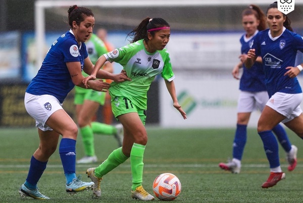 Huỳnh Như chơi nỗ lực trong gần 20 phút vào sân từ ghế dự bị trước đội mạnh nhất giải VĐQG nữ Bồ Đào Nha. Ảnh: Lank.