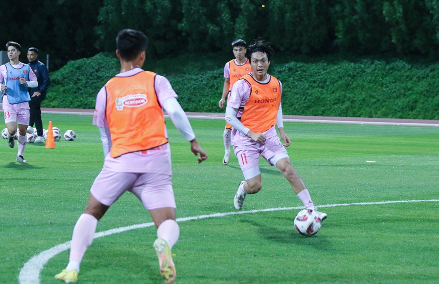 Đội tuyển Việt Nam trong một buổi tập ở Qatar. Ảnh: VFF