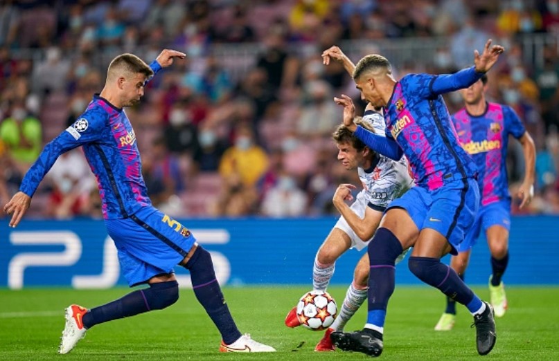 Muller và Pique nhiều lần đối đầu tại Champions League.