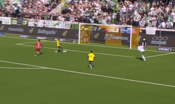 Trước sai lầm ngớ ngẩn của thủ môn đội khách, Benie Traore thoải mái băng xuống, dứt điểm vào lưới trống, mở tỷ số. Đoạn video hài hước thu hút gần 3 triệu lượt xem trên một fanpage thể thao của Thụy Điển.
