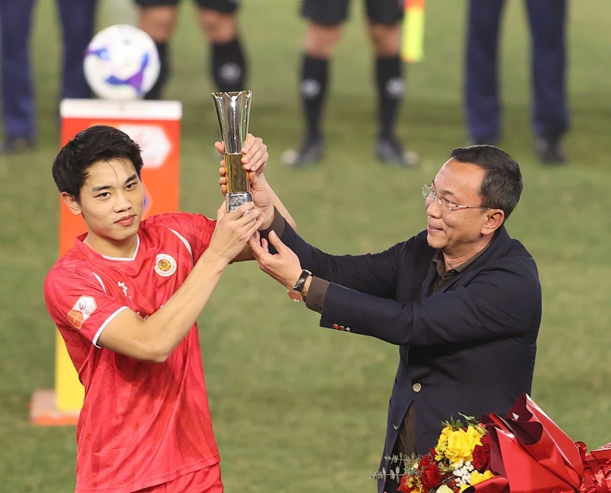 Tối 1-2, trên sân Hàng Đẫy diễn ra trận Công an Hà Nội FC gặp Ninh Bình FC tại vòng 12 V-League 2025-2026. Trước trận đấu, Chủ tịch Liên đoàn Bóng đá Việt Nam Trần Quốc Tuấn đích thân trao cúp biểu trưng “Vua phá lưới” Giải bóng đá U23 châu Á 2026 tới tay cầu thủ Đình Bắc.