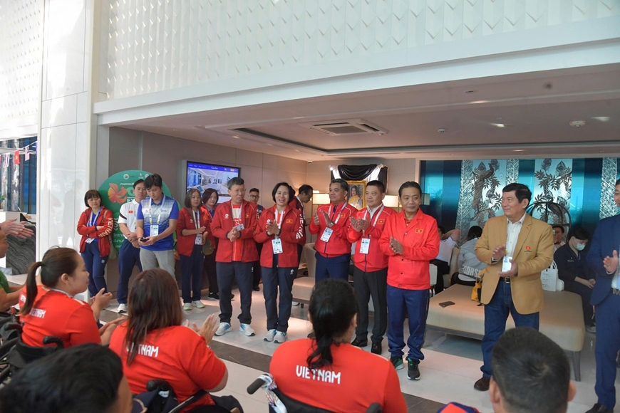 Thay mặt Đoàn TTNKT Việt Nam tham dự ASEAN Para Games 13, Trưởng đoàn Lê Thị Hoàng Yến báo cáo nhanh về tình hình ổn định chỗ ở, điều kiện tập luyện tại các địa điểm thi đấu, đồng thời khẳng định toàn đoàn đang duy trì tinh thần tập trung, quyết tâm cao trước ngày tranh tài chính thức.