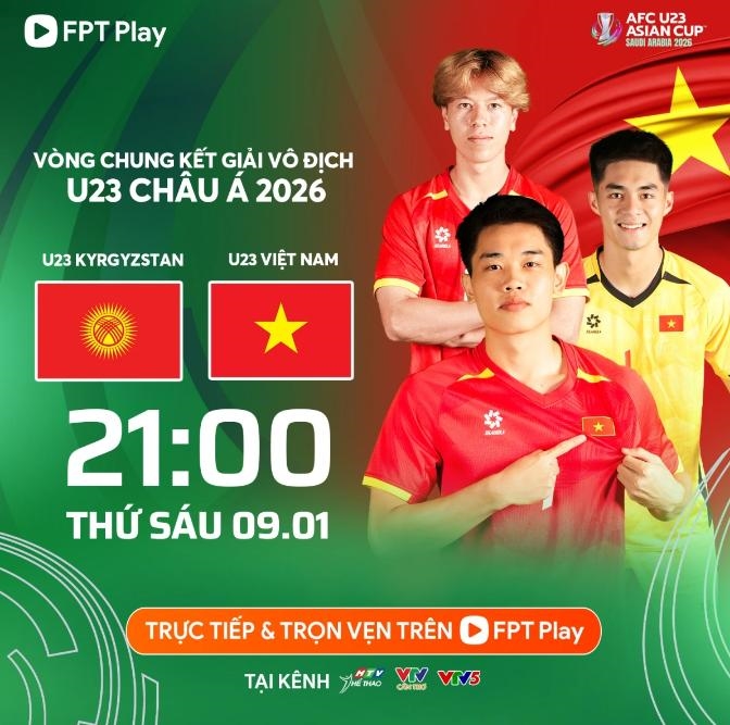 Cập nhật link xem trực tiếp U23 Việt Nam và U23 Kyrgyzstan, diễn ra lúc 21 giờ hôm nay (9-1), ở lượt trận thứ hai bảng A, vòng chung kết U23 châu Á 2026.